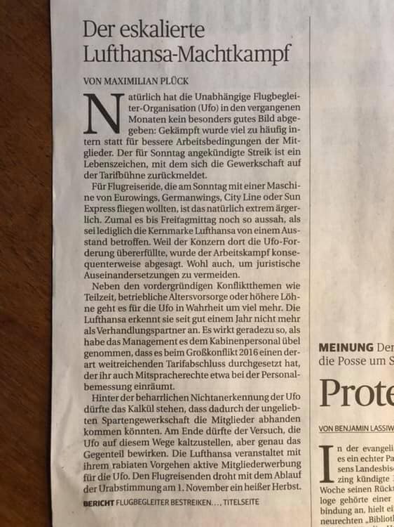 - Artikel vor dem Hintergrund des zu diesem Zeitpunkt noch angekündigten Streiks bei LH
