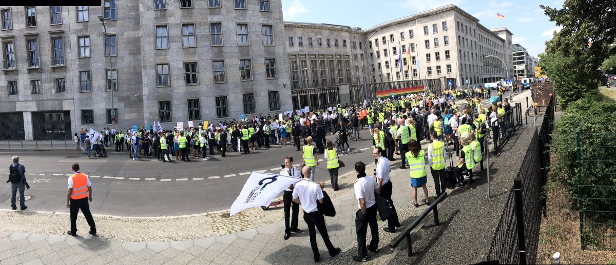 Die Beamten vor Ort haben ca. 850 Teilnehmer gezählt, außer uns waren auch GWI, LGW und Tuifly Kollegen vor Ort, denen ein ähnliches Schicksal droht! Wir als Kabinen PV und auch im Namen der UFO Kabinen TK möchten uns an dieser Stelle nochmal von ganzem Herzen bei euch allen bedanken. Egal ob ihr vor Ort oder mit den Gedanken & Herzen dabei wart!