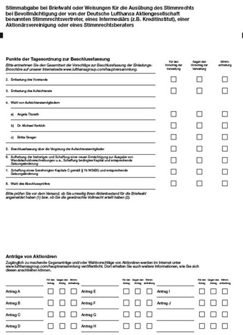 Stimmabgabe bei der Lufthansa-Hauptversammlung am 4.5.2021