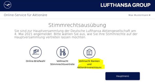Weitere Hinweise zur Online-Anmeldung zur ordentlichen Hauptversammlung 2021 der Deutschen Lufthansa AG findest Du hier.